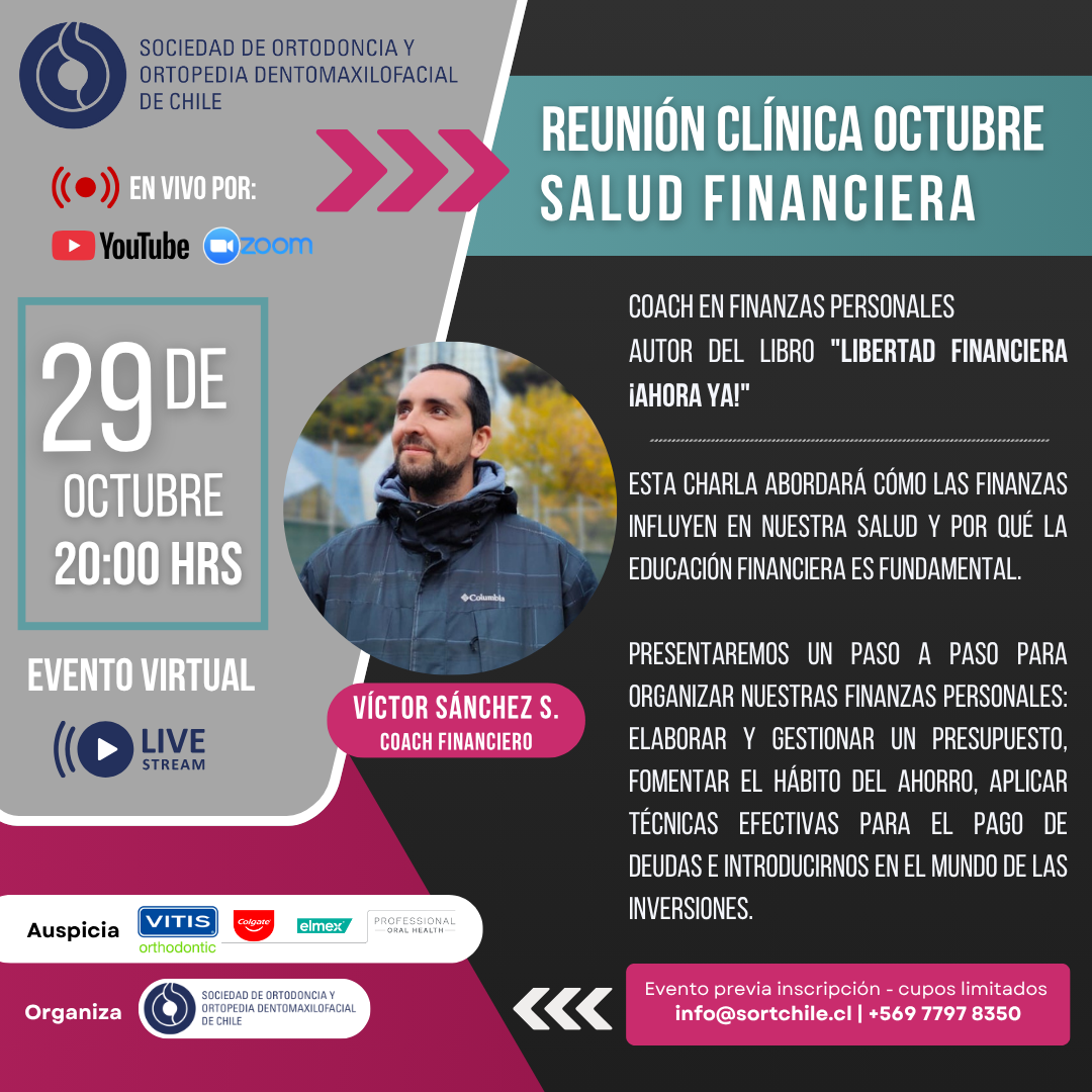📢 Este 29 de octubre a las 20:00 hrs, conéctate a nuestra Reunión Clínica Virtual con el invitado especial: Víctor Sánchez S., Coach en Finanzas Personales y autor del libro “Libertad Financiera ¡Ahora ya!” 📖💡 En esta charla descubrirás cómo las finanzas influyen en nuestra salud y por qué la educación financiera es clave para nuestro bienestar.