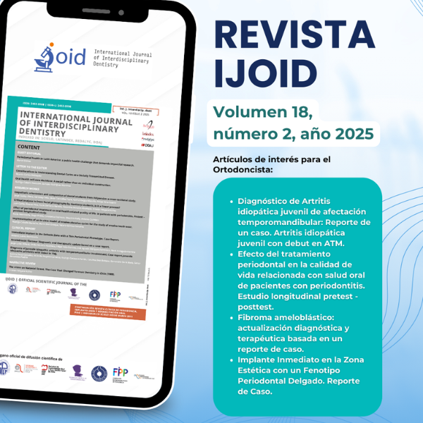¡Ya está disponible el nuevo número de la Revista IJOID en nuestra web! | En esta edición encontrarás artículos de alto interés para ortodoncistas, entre ellos: - Diagnóstico de artritis idiopática juvenil con afectación temporomandibular