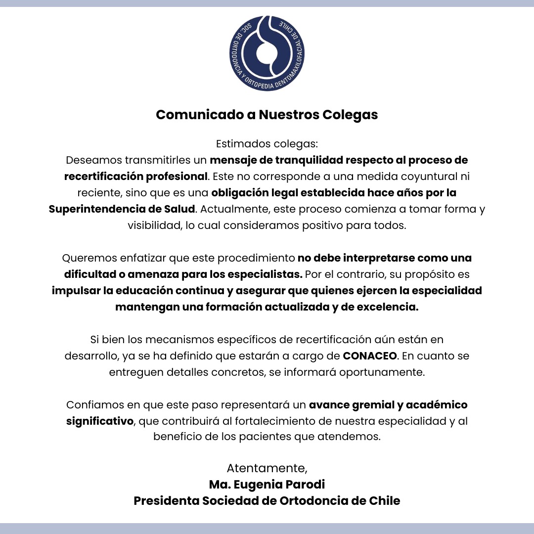 La Sociedad de Ortodoncia de Chile estuvo presente en ceremonia del Día de la Odontología | La Sociedad de Ortodoncia de Chile, representada por nuestra presidenta, Dra. María Eugenia Parodi, participó en la ceremonia del Día de la Odontología, organizada por el Colegio de Cirujanas y Cirujanos Dentistas de Chile.